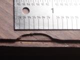 On another guitar I was routing the ledge for the binding—the decorative piece of wood on the side edges of the guitar—when the router bearing came loose and fell off, the result being that the router gouged a quarter-moon about 3/8” into the back of the guitar. At first I thought that I would have to cut the back off the guitar and make a entirely new one. I was so frustrated that I had to turn off the lights and leave. The next morning, however, I realized that this could be fixed.